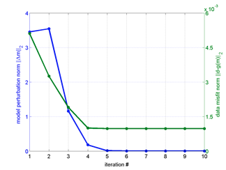 invGN( fwdfunc, derivfunc, epsr, dmeas, covd, lb, ub, m0, L, lambda, maxiters, useMpref, verbose, fid, vargin );Just as a few examples to demonstrate this idea of different inputs causing different mode of computation: If